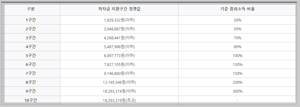 - 한국장학재단에서 운영하며 국가예산으로 운영되며 지원구간에 따라 차등하여 지원됩니다.