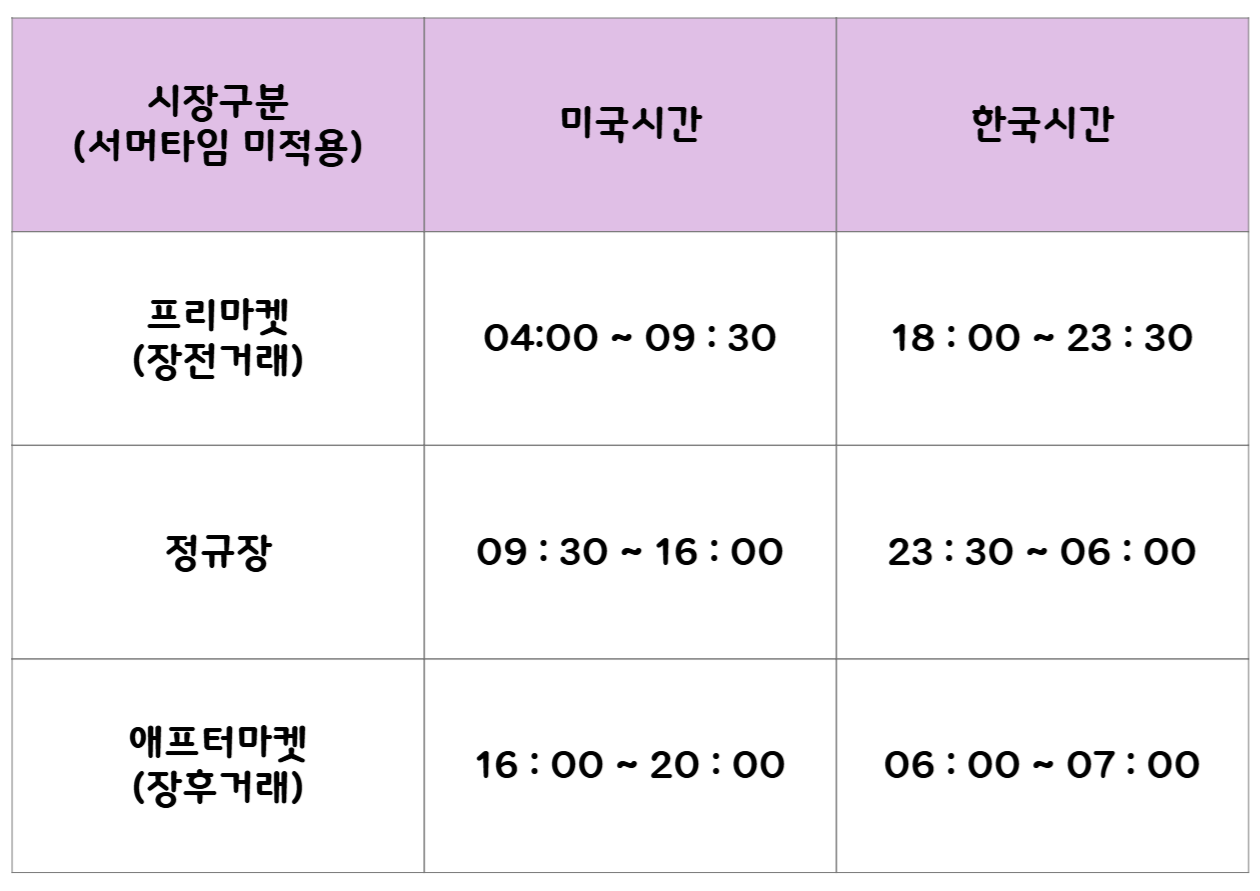 🔸미국 주식 시장 운영 시간 체크