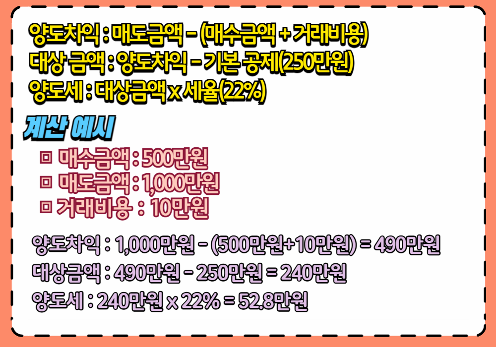 • 양도세 :240만 원 x 22% = 52.8만 원입니다.