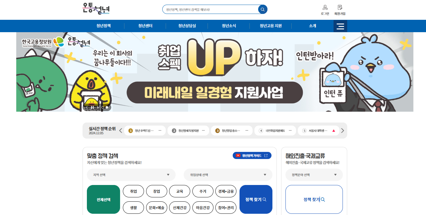 이곳은 한국 고용정보원 주관 '온통청년' 사이트입니다.