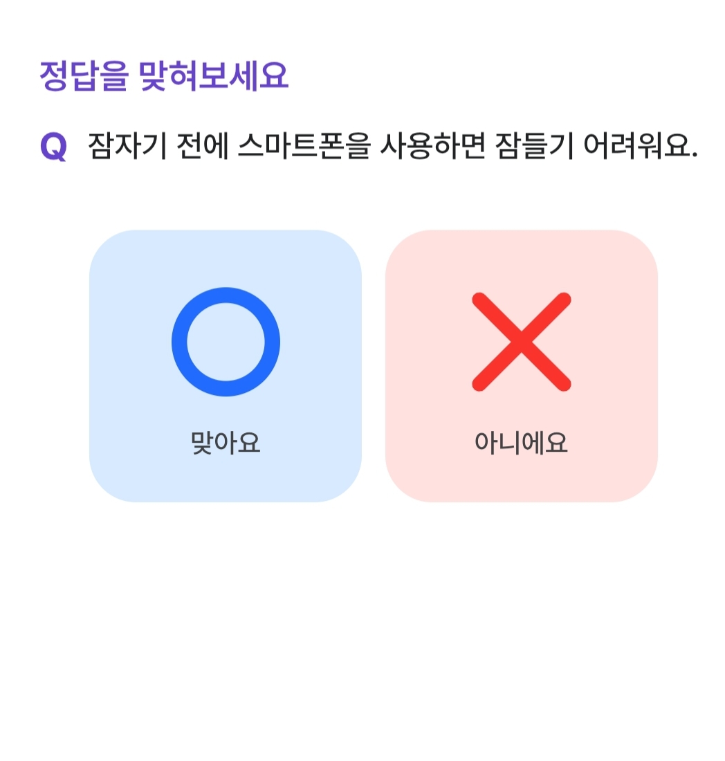 Q : 잠자기 전에 스마트폰을 사용하면 잠들기 어려워요.