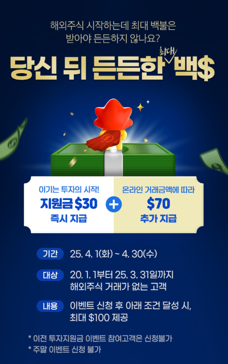 ③ 5천만 원 이상 해외주식 온라인 거래 : 축하지원금 💲 30 지급