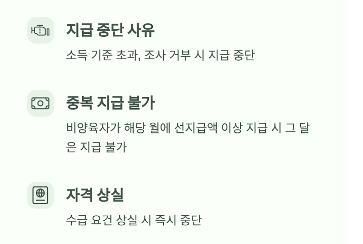 🔸  중위소득 기준 초과, 거부 시에는 지급 중단