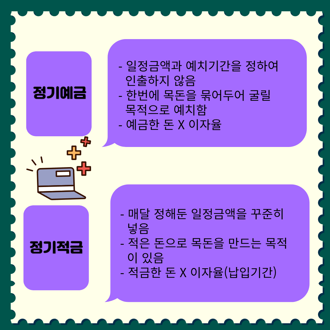 예금 같은 경우에는 목돈에 10%의 이자가 붓는반면에 적금은 이자가 붙는 방법이 다릅니다.
