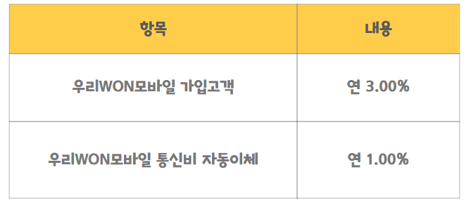 👉 우리 WON모바일 통신비 자동이체 시 : 연 1.0%