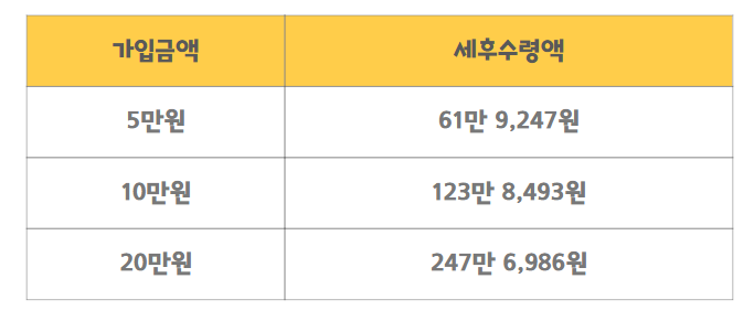 ◾ 총 납입금액 : 20만원 X 12개월 = 240만 원