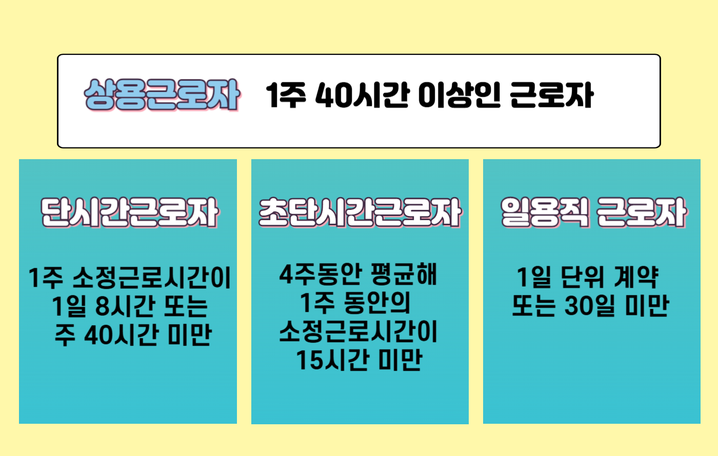 ◽ 1주 동안의 소정근로 시간이 상용근로자보다 짧은 근로자입니다.(1일 8시간, 주 40시간 미만)
