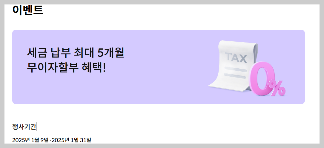 2025.1.1~1.31일까지 무이자 할부입니다. 날짜를 꼭 확인하시기를 바랍니다.