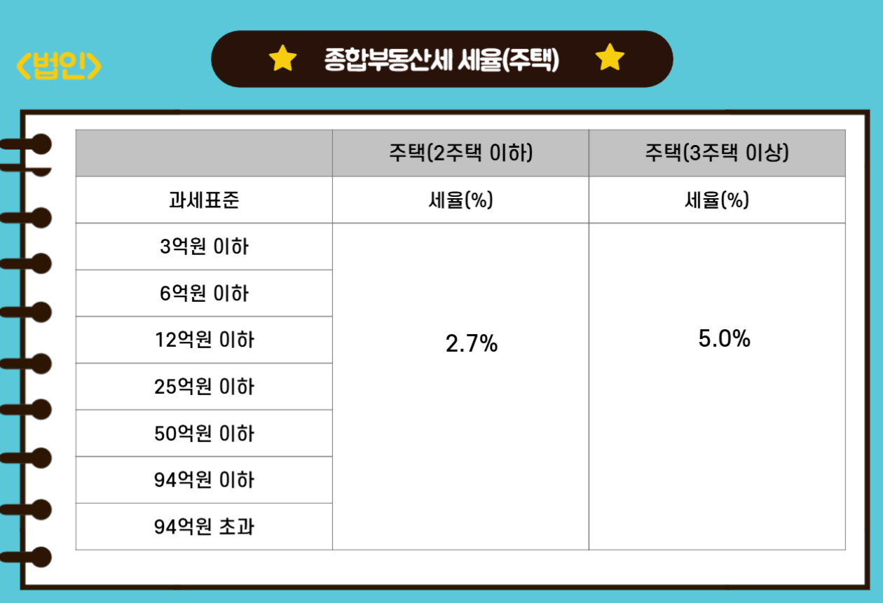 ▪ 국세청 홈 > 국세신고 안내 > 개인신고 안내 > 종합부동산세 > 기본정보 > 세율
