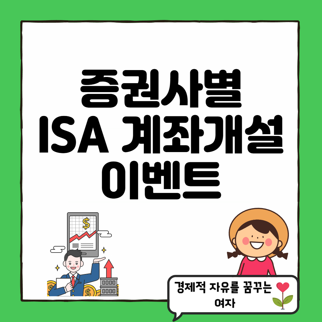 증권사마다 ISA 계좌 개설 이벤트를 많이 하고 있습니다. 그만큼 ISA 영향력이 있다는 이야기 아닐까 싶습니다. 개인의 저축과 투자를 다양하게 할 수 있는 종합계좌로서 1인 1개만 가질 수 있습니다. 그러므로 신중하게 증권사를 선택해야 합니다. 투자도 하면서 세재 혜택을 주는 중요한 계좌이므로 활용법과 증권사별로 정리를 해보았습니다.