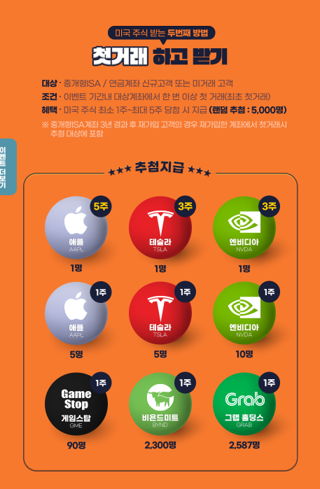 혜택 : 미국 주식 최소 1주 ~ 최대 5주 당첨 시 지급(랜덤 추첨 : 5,000명)