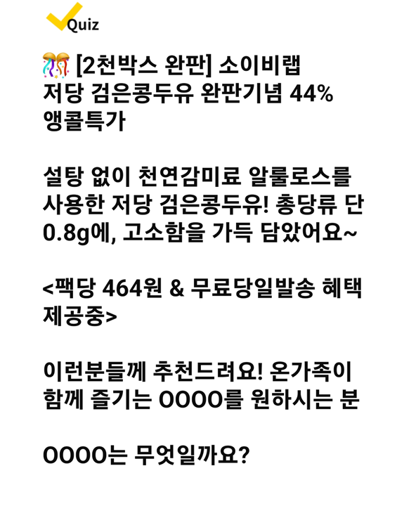 Q : 2천박스 완판 소이비랩 저당 검은콩두유 완판기념 44% 앵콜특가