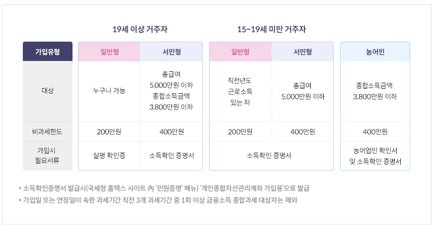 • 서민형과 농민형은 400만 원의 비과세 혜택이 있습니다.