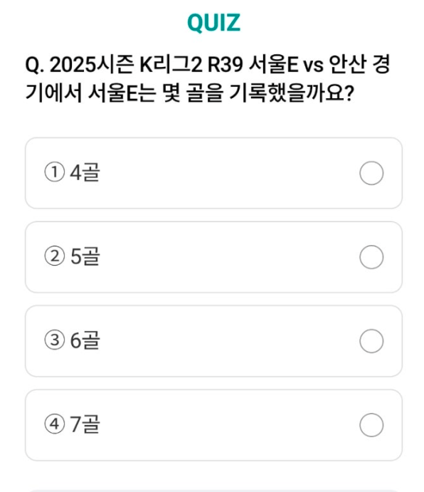 Q : 2025시즌 K리그 2 R39 서울 E vs 안산 경기에서 서울 E는 몇 골을 기록했을까요?