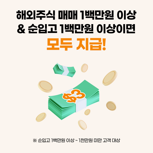 ③ 해외주식 매매 1백만 원 이상 & 순입고 1백만원 이상이면 모두 💲3 지급