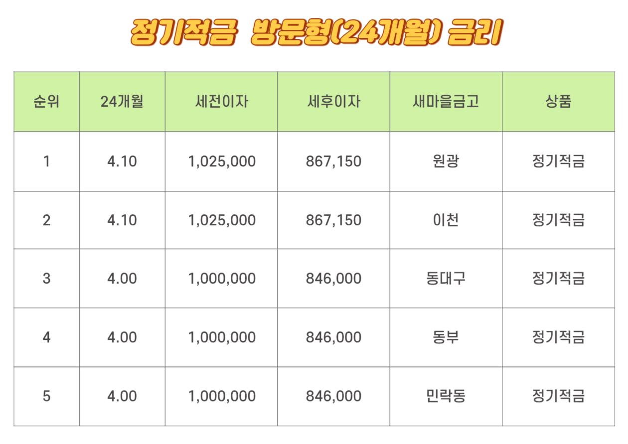 24개월 새마을금고 정기예금(방문)