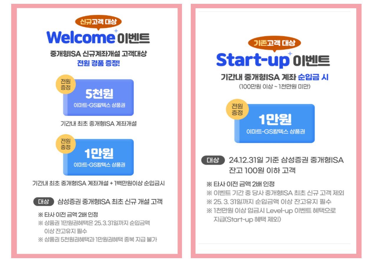 • 기간내 최초 중개형 ISA 계좌 개설 시 이마트-GS 칼텍스 상품권 5천 원을 증정합니다.